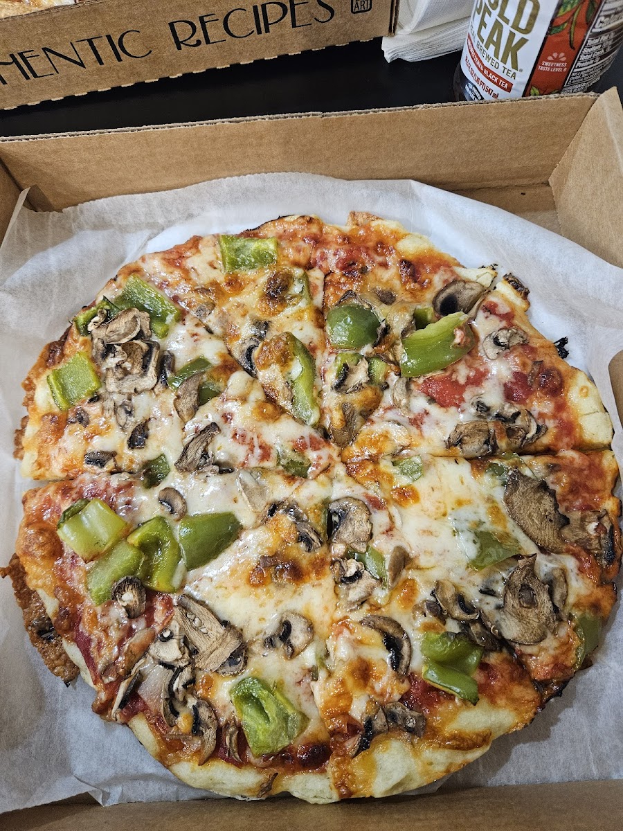 Gluten-free crust is EXCELLENT!!!!! I went with a friend and I had a gluten-free crust, she had regular. They make the gluten-free crust themselves. It was absolutely wonderful. One of the things I miss the most being gluten-free is good pizza. This is mostly a take out place with just 3 small tables.